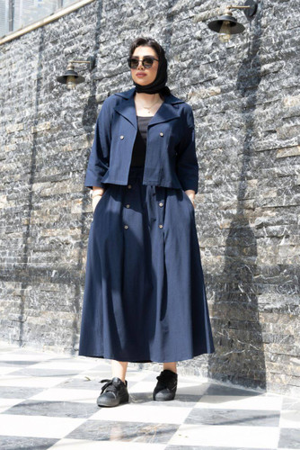 ست کت و دامن ۶ دکمه کمربند دار