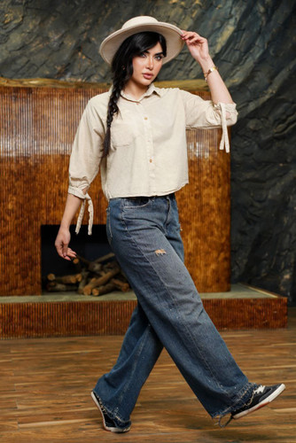 شلوار جین واید لگ سرخود زنانه | استایل راحت و ترند تابستون