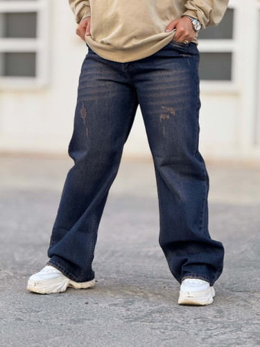 شلوار جین بگ سورمه ای زنانه قد ۹۰زاپدار | ترند، راحت، پرفروش
